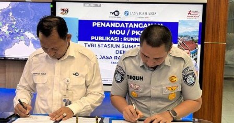 PADANG — PT Jasa Raharja Kantor Wilayah Sumatera Barat bersama TVRI Sumatera Barat resmi menandatangani Perjanjian Kerja Sama (PKS) dan komitmen bersama pada Rabu (8/4). Kolaborasi ini bertujuan meningkatkan kepatuhan masyarakat terhadap kewajiban administrasi kendaraan sekaligus memperkuat edukasi keselamatan berlalu lintas di Sumatera Barat.